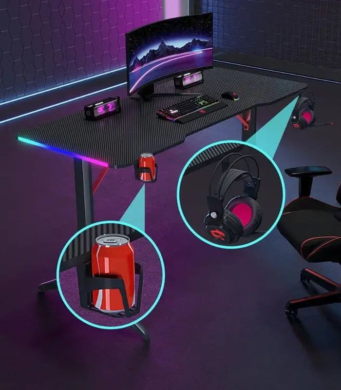 سعة سطح الطاولة: تستوعب شاشة وملحقات اللعب الأساسية مع مساحة مريحة للحركة.